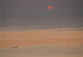 | 「事実は小説よりも・・・」という言葉があるが、それを映像で証明している作品だ。空と山と海。それぞれが均衡した力で引っ張り合うように捉えた構図の巧みさが、秋の落日のひと時を一幅の絵に仕上げている。 |